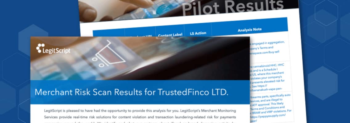 For a limited time, qualified organizations can receive 5 free merchant risk scans. Submit up to five merchants and get a detailed analysis highlighting compliance flags, restricted products, suspicious activity, and policy alignment issues.